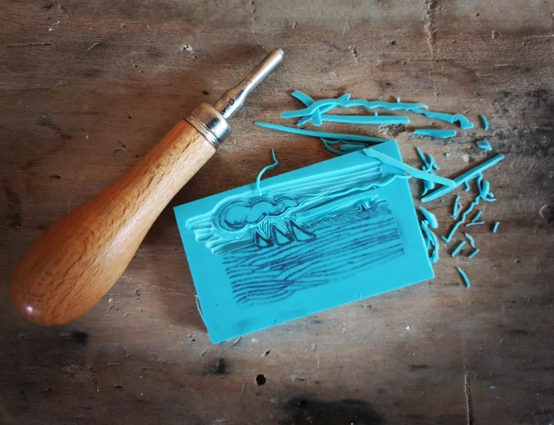 Puis, avec patience, minutie et une grande théière fumante à portée de main, je vais creuser la matière pour obtenir une matrice d’impression.