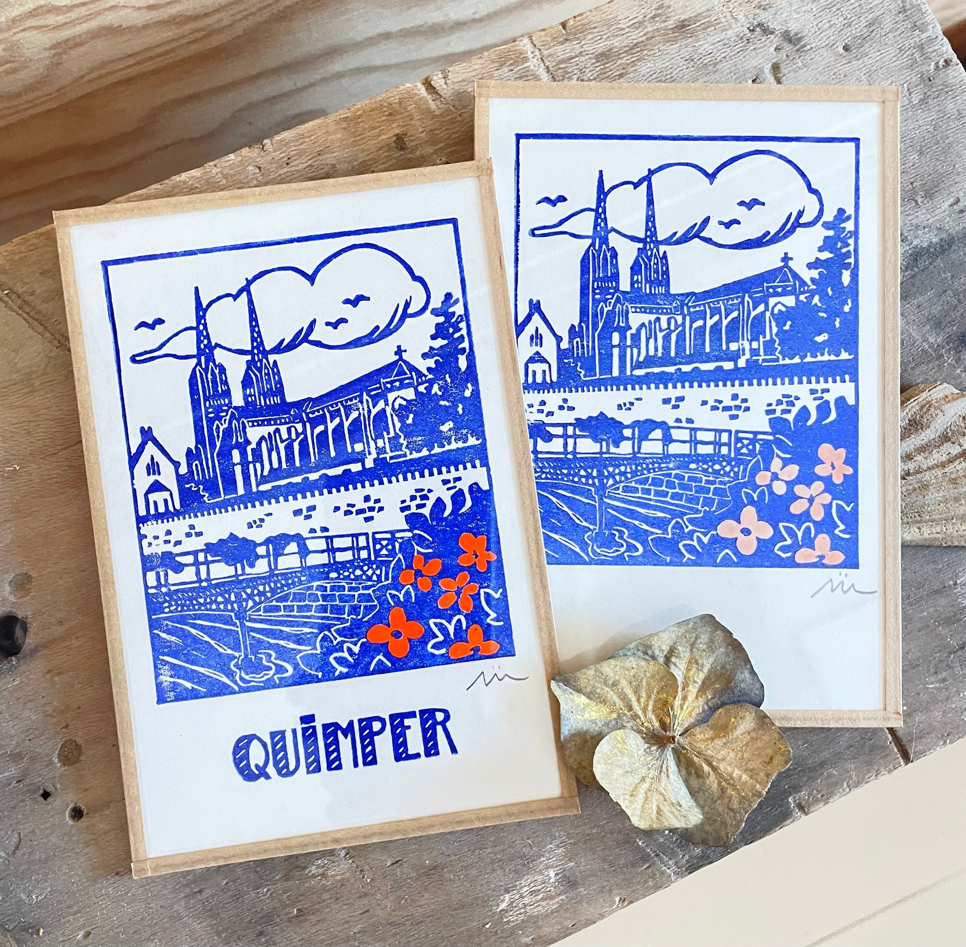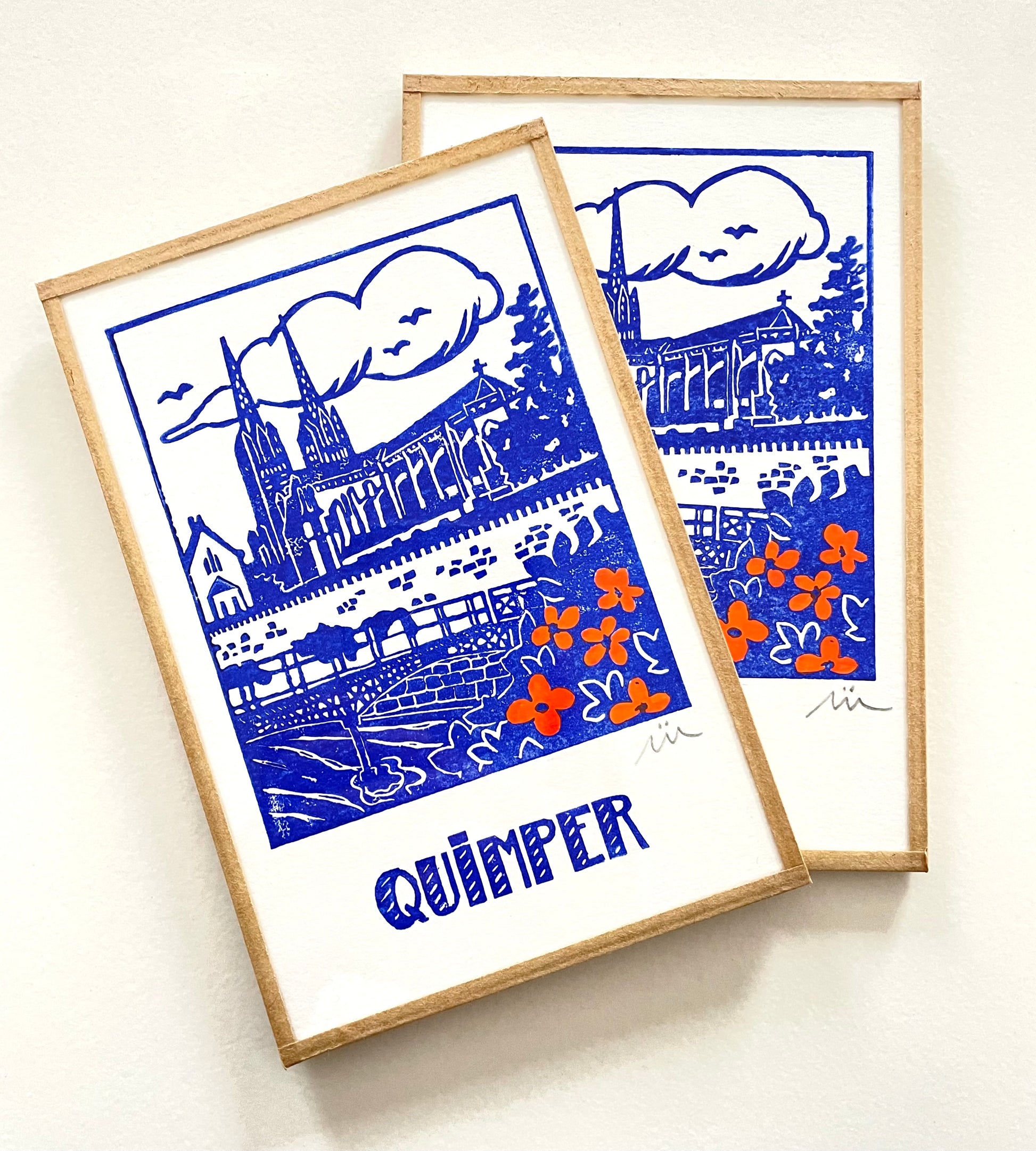 Impression originale réalisée à la linogravure sur gomme. Dessin, gravure et impression réalisés par mes soins dans mon atelier Finistérien - vendu sous-verre avec encadrement bande Kraft - Attention : chaque impression étant réalisée une par une à la force des bras, il peut y avoir des nuances d'encrage. Il ne s'agit pas de reproductions.